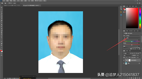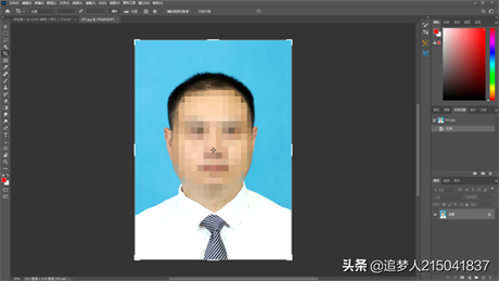 把要改变背景颜色的证件照导入【Photoshop】,如下图:
