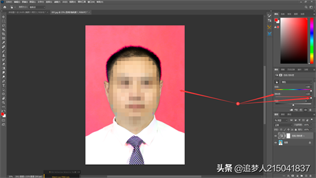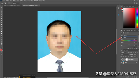 最佳答案选取一张背景颜色为青色的证件照做例图,用图说的方法,把证件照青色背景在【Photoshop】中快速改变为红色背景过程演示一下。把要改变背景颜色的证件照导入【Photoshop】,如下图:①点击右下工具栏◑【创建新的填充或调整图层】 ②点击【色相/饱和度】,如下图:点击手形工具栏,出现个吸管工具,吸取......