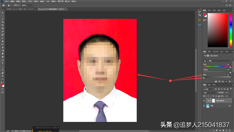 ②将饱和度调整滑块向右调满,红色逐渐加深,如下图:
