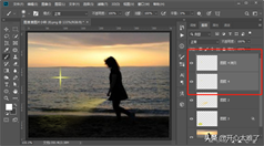 按住“Ctrl”键点击这两个绘制星芒的图层,选择这两个图层,按“Ctrl+E”合并这两个图层。