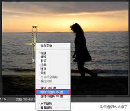 按“Ctrl+J”快捷键复制一个,按“Ctrl+T”打开变形工具,点击鼠标右键,选择“顺时针旋转90度”。按“回车”键应用,这样,一个星芒就制作好了。