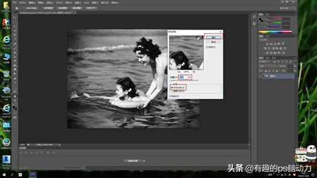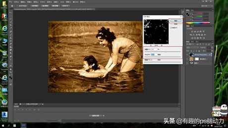 2.下面开始执行滤镜里的杂色选择添加杂色,勾选平均分布,杂色的数量(7.16)%就可以,给照片添加杂色,是让旧照片体现出年份很长也很旧,具有模糊和不太清楚的效果。