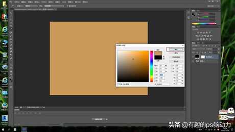 3.接下来点击图层下方的饱和度按钮,选择纯色填充,弹出拾色器,使用吸管工具选取颜色,小编认为淡黄色比较符合旧照片的颜色,点击确定以后,图层混合模式改为颜色,在制作的过程中,可以看一下效果,是否和旧照片的颜色相似,可以根据实际情况来调整。