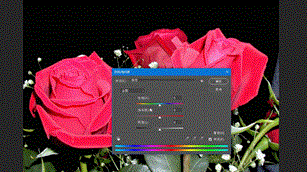 注意:像我们这个案例中,花的颜色是红色的,我们在左上角进行选择时要分别调整红和洋红两个都包含红色的通道,才能完成对花朵色彩的更换。