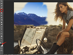 例如:现在需要为我们的美女背后添加一座更高的山峰,导入一张山峰照片之后,让这个山峰显示在美女这张照片背后,那么需要把山峰脱下来。