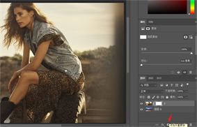 为美女图层创建一个蒙版,点击我们图层下方,这里有一个创建蒙版的按钮。这个时候美女照片,边上会出现一个空白的板子,它就是蒙版。蒙版能起到一个显示和隐藏画面的作用。在蒙版里面,它只能识别出黑、白、灰这三种颜色,如果选择到蒙版,这个前景色和背景色里面,选任何颜色它都会默认成为黑、白、灰。(比如说把前景色改成红色,点击确定,它还是灰的)
