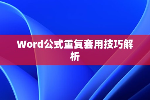 通过以上介绍,相信大家对Word公式重复套用的技巧和步骤有了更深入的了解,在实际操作中,多加练习,熟练掌握这些技巧,将有助于提高文档编辑效率。