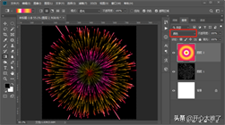 拉一个好看的渐变,选择径向渐变,图层混合模式更改为“颜色”,烟花就制作完成了。