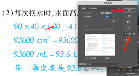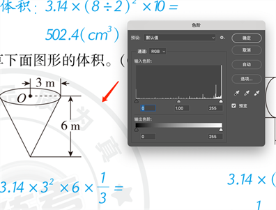 去掉水印后的图片还残留蓝色答案部分,如果还是采用色阶调整的方法,看看是什么效果?