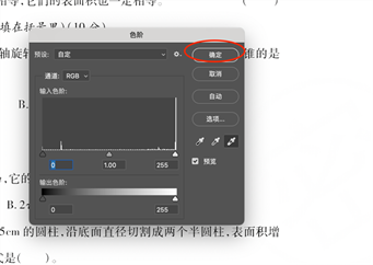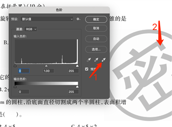这套卷子只是在右侧打了一个大大的“密”字深色水印,直接按住ctrl L键(或在顶部的菜单栏找到“图像”再点“调整”然后点“色阶”),我用的是苹果系统,其他系统的界面显示会略微有所不同。