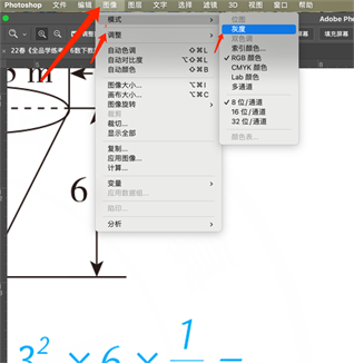 没有成功。退回去(ctrl z),改变一下图像模式,菜单栏找到“图像”-“模式”-“灰度”