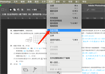 当然,这种不同颜色的还有另外一种方法,菜单栏点“选择”,点色彩范围