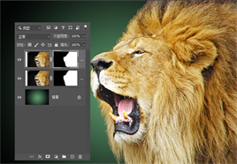 由于狮子图像不能融入到背景当中去,我们需要利用图层蒙版工具将狮子图像的背景隐藏起来。