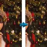 而如果简单地用 PS “制造”出一些彩灯,为圣诞树“化化妆”,作品的“节日氛围”和视觉效果就会好得多: