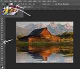21、使用“画笔工具”,颜色为黑色,降低透明度,用“画笔工具”刷水面的开始部位。
