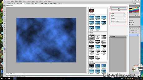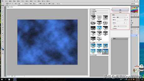 下面就要运用PS里的滤镜来制作效果了,点击滤镜—渲染—云彩,颜色正好是拾色器的颜色,可以仔细看观察一下效果,如果颜色不太符合,可以选择历史记录画笔工具,删除进度,重新设置背景颜色,直到满意为止。