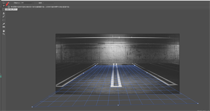 使用“创建平面工具”,按照图片上的透视去画出一个透视网格(跟着路面的路径画就行),见3-2图;