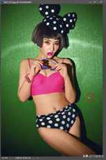 就换人像片的背景颜色而言,哪一个调色命令会更适合呢?从下面打开的这张时尚性感美女照,可以看到是全绿的背景,如图2所示。
