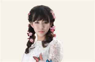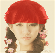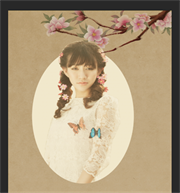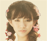 Step14 将“桃花”图层栅格化,然后使用“钢笔工具”将覆盖在人物头部的桃花抠出,按快捷键Ctrl+Enter将抠出部分转换为选区,然后按Delete键删除选区中的内容。