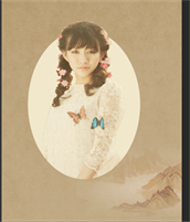 Step06 在“人物修饰.psd”文档中选择顶层盖印图层“素雅人像”,将其复制到“纹理背景.jpg”文档,并将图层摆放至椭圆形状图层上方,然后按快捷键Ctrl+Alt+G向下创建剪贴蒙版。