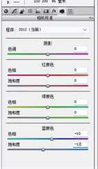 Step09 打开“校准”面板,在“蓝原色”属性下,调整“色相”与“饱和度”参数,如图所示,完成设置后单击“确定”按钮。