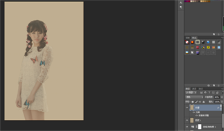 Step01 在“图层”面板中,单击“创建新的填充或调整图层”按钮,在打开的菜单中选择“色相/饱和度”命令,在“人物”图层上方创建一个调整图层。