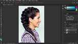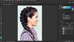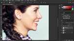 4、观察图像,我们会发现,在美白人物肌肤的同时,肌肤以外的部分,色彩也发生了改变,要解决这个问题,当然就该蒙版上场了。点击图层面板下方的“添加图层蒙版”按钮,为图层2添加蒙版,设置前景色为黑色,用画笔工具涂抹肌肤以外的部分,与肌肤衔接处的涂抹 ,适当降低画笔硬度,降低不透明度,让过渡衔接更加柔和自然,注意细节处的耳钉、红唇, 也需要把它涂抹回来,还原先前的色彩。为更准确地涂抹,期间需要频繁调节画笔的大小,可以通过它的快捷键,单击键盘上的左右中括号来快速地调节(注意:必须在英文输入法状态下才能使用)。