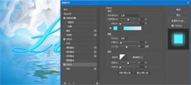 继续添加内发光命令,参数设置如下:不透明度调为100%;更改颜色;方法改为柔和;阻塞和大小参考图中的参数相应的调整。