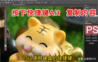 这个仿制图章工具的作用,就是复制相近的图案或者是色块,来修复残缺的部位。举个例子,这只小老虎的王字是残缺的,那就要复制跟它一样的色块来修补残缺的部位。