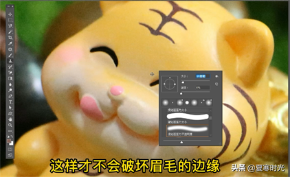 我现在调整的笔刷比较小,这样才不会破坏眉毛的边缘,保持它原有的质感。