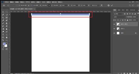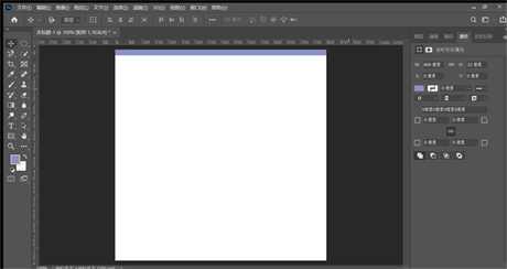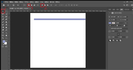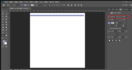 3, 把刚建的矩形调整大小。找到属性,按照下图所示调整,宽度(w)调整800像素是为了和所建文件800像素一致,高度(h)随便,高度小一点最终效果好一点,我设置的是22像素。