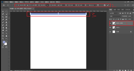 6,在右侧找到图层并单击矩形1,如图,接着ctrl+j得到图2中1号所示,ctrl+t得到图2中2,3号所示