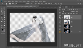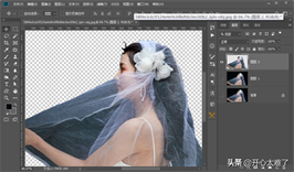 我们以这个头纱为例,介绍一下通道抠图的具体操作。首先,我们用钢笔工具,把人物主体从背景中分离出来。