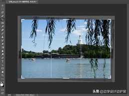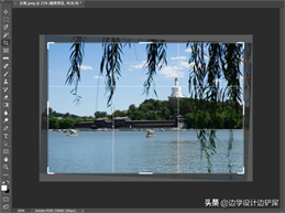 松开鼠标后,Photoshop 会立即旋转图像,让水面线保持水平状态。Photoshop 再一次调整了裁剪边界的大小,使其保持在图像内。