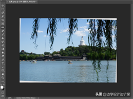 最后让我们再看看另一种在 Photoshop 中拉直图像的方法,它很少见但却很实用。这一次我们不使用裁剪工具而是使用标尺工具。