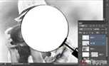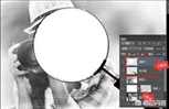 按住Alt键的同时在“图层4”和“背景副本”两个图层中间单击鼠标左键,创建剪切蒙版,放大镜外面显示的是素描画,入下图所示