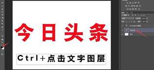 第三步,在电脑上安装上“汉仪粗黑简体”字(方法简单,在此不赘述)。设置字体颜色为红色,RGB值如图为R:247;G:8;B:25。点击文字工具,选横版模式,这里打上“今日头条”四个字。按Ctrl键 点击“今日头条”图层,调出“今日头条”文字选区。右键点击“今日头条”图层,选择删格化文字。
