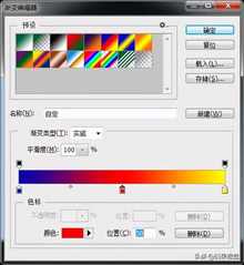 在渐变编辑器中,可以设置颜色,修改颜色,添加颜色,
