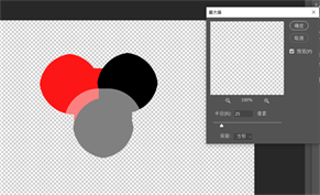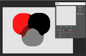 当我们增加半径的时候,你会发现黑色向红色和灰色渗透,灰色也向红色渗透,而红色区域逐渐变小。这个是为什么呢?这是因为,最小值这个命令是在你设置了半径后,他会在这个区域进行计算,用明度低的替代明度高的,由于这三个颜色的明度是黑色<灰色<红色那么自然黑色就灰色和红色渗透。