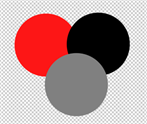 在介绍起用法之前我们先来看看其原理是什么,先来做个试验吧,我们新建一个图层,分别用红、灰和黑三种颜色填充。