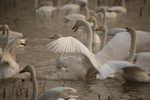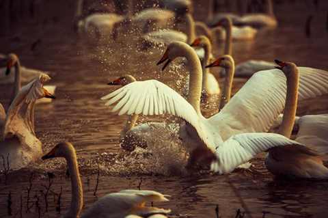 到此整个画面就结束了,傍晚夕阳照射的湖面,暖光洒在洁白的天鹅身上,醉了!