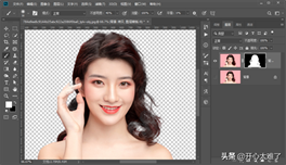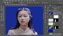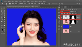 用白色画笔工具修整蒙版遮盖不足的区域。对于头发上面的环境色,下面介绍解决办法。