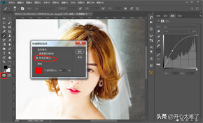 再次点击快速蒙版图标或者按快捷键“Q”退出快速蒙版编辑状态,所选择的区域自动生成选区。可以对选区内的图像进行曲线提亮或者复制等操作。