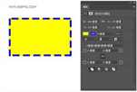 创建完之后,我们可以在属性面板上任意的改变它的颜色和描边效果,下面我们改变填充颜色黄色,描边蓝色,描边为虚线,描边8个像素大小,如下图所示: