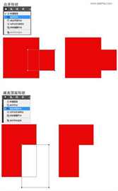 7、在矩形工具选项栏上路径操作中有不同的组合,我们可以通过这些组合更好的绘制自己需要的图形,效果如下图所示: