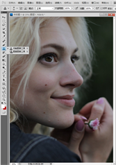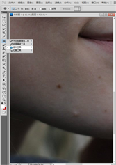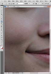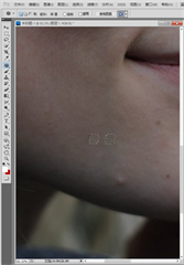 首先我们将我们的照片拖入ps,我们能很明显的看到小姐姐的连上又两个比较大的痣,下面我们就来p掉它。