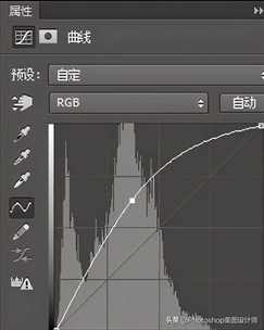 然后在“曲线 1 ”图层的“曲线调整”面板,按照下图所例调整(RGB)曲线标点,即可完成。