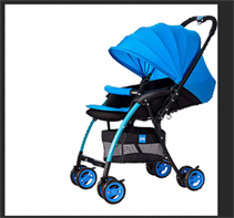 选择上方图像时,要分析一下图像和背景哪个部分的颜色单一,这个图像的背景是白色,使用魔棒工具在白背景上单一会将婴儿车的外部白色背景全都选择上,然后在上方的选项栏中选择“添加到选区”命令,继续将婴儿车内部白色图像选择上。