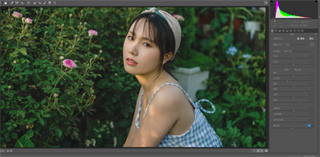 从色阶直方图上来看比较像是个中长调的片子,我们直接进入Camera raw滤镜。
