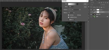为了让人物突出,暗部更加的多,可以尝试来加个暗角,我习惯用渐变填充调整图层。